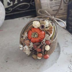 小さなバスケットに、サンタとグリーンや木の実などを飾り付けました。