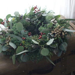 ■花材:スギ・ルスカス・ペッパーベリー・木の実など