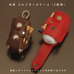 ゴルフボールケース 縦型2個用 本革 イタリアンレザー 名入れ 日本製 ハンドメイド ゴルフ用品 ゴルフ小物