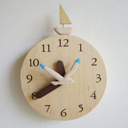 材:本体メープル、長短針はチェリー、秒針はウォールナット。文字盤、他はレーザー加工。スタンドはタモ。