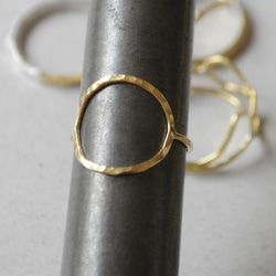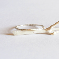 細い18金のリングをワンポイントで叩いてあるリングです。