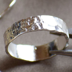 叩いてあるところがワンポイントになり、他の指輪との相性も良いです。