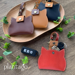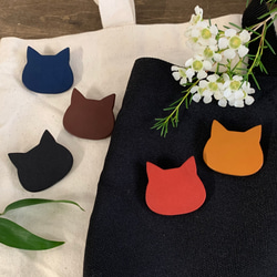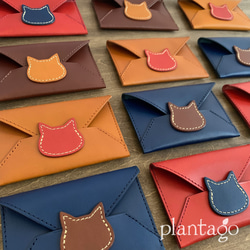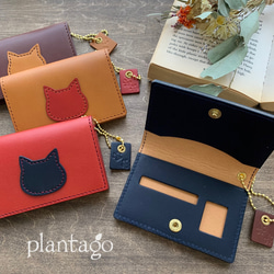 【本革】ねこワッペンのミニポーチ ♪ネイビー