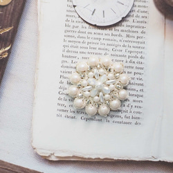 モチーフレースにビーズを刺繍しました。シャルロットビーズ(通常のビーズよりも小さい極小ビーズの1面だけにカットを入れたビーズ。カットされた面に光が反射するので、角度によって様々な表情が楽しめます♪)を一つひとつ縫いつけています。