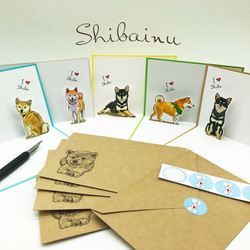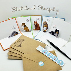 色々なポーズをしたシェパードのイラストが5種類。封筒もシェパードのイラスト入りです!