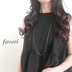 シンプルにそのまま着けたり、長さがあるので二連にしてもお着け頂けます。また長さの違うお手持ちのネックレスと重ね着けしても素敵です。