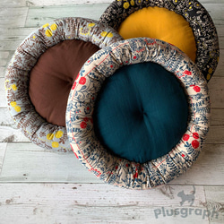 縁にしっかり綿が入っていますので、型崩れがしにくく、猫さんが大好きなアゴのせスタイルも、みっちり丸まりスタイルもカバーできる縁高に仕上げました。