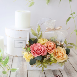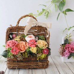 実ものやリーフもすべてプリザーブドフラワーにこだわったナチュラルで贅沢なアレンジメントです。