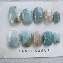 青色チューリップの花のアートが描かれたベリーショートネイルチップです。ポップで赤色や黄色、ピンク色などのイメージのあるチューリップですが、このネイルデザインはあえて実在しないブルーのチューリップがプロのネイリストの手書きによって描かれています。チューリップの花は好きだけどカラフル過ぎるネイルデザインは嫌だ、少し変わった他の人が付けていないチューリップネイルがしたい方などにおすすめの斬新かつ新しいチューリップネイルデザインです。チューリップが本来持っているポップな雰囲気を刷新し、クールで大人っぽいチューリップに仕上がっています。薬指部分にジェルネイルでチューリップのネイルアートが描かれていますが、薬指部分以外のネイルにもこだわりが詰まっています。ラメでキラキラ輝くネイル、マーブル大理石調の青色のネイルは、薬指部分のチューリップネイルアートの引き立て役になっています。短い爪小さい爪専用のベリーショートネイルチップなのでチビ爪女性でも安心安全です。