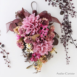 ■花材:(アーティフィシャルフラワー)コスモス、ラナンキュラス、マム、アストランティア、小花、リーフ、紫陽花、ベリー、他
