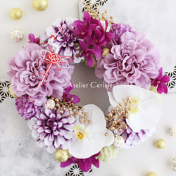 コスモス ラナンキュラス フラワーリース<アーティフィシャルフラワー>ホワイト モーブ29センチです。