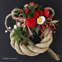 玄関の外にも飾れるようにすべての素材をアーティフィシャルフラワー(造花)でお作りしています。