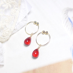 天然石のような風合いのドイツビーツ(10mm)とつや消しリングのおしゃれなピアス。