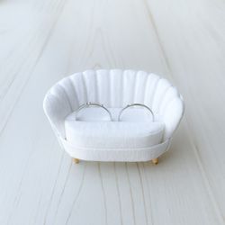 ミニチュアのシェルソファ型のリングスタンド、リングピローのブルーグリーンです。