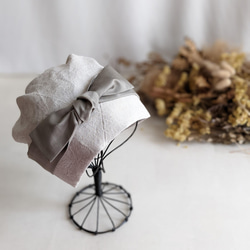 頭小さ目さんから大き目さんまで 軽くて優しいコットンリネン帽子(ベージュ×パールベージュ)