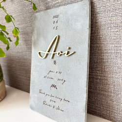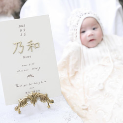 ベージュホワイトのボードにゴールド等の立体文字の看板です。