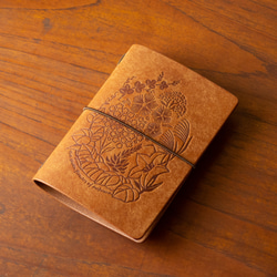 【秋季限定】手帳・ノートカバー コニャック×オリーブグリーン-秋の七草-(A6/B6/A5)