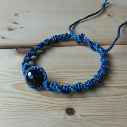 グレーの綿糸(コットン)のマクラメブレスレットです。オーバルの天然石(石名不明)とシルバービーズ(真鍮)を編み込んでおります。