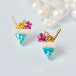 長時間つけても痛くないよう、本体の軽量化につとめました。またイヤリング金具は埋め込んであるので、大変丈夫です。取り扱いやすさにもこだわりを持っております。