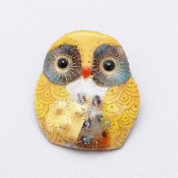 鳥獣戯画(黄色)の七宝焼ブローチ【受注制作】