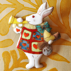 鳥獣人物戯画、いわゆる鳥獣戯画をモチーフにした大きめのブローチです。