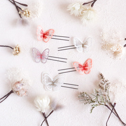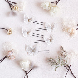 オーガンジー刺繍のちょうちょを髪飾りに仕立てました。