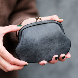 国内のタンナーによるあまり出回ることのない箔レザー使った手のひらサイズのがま口財布