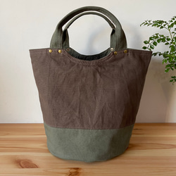 浜松産帆布【見っけバッグ】[横長トート Lサイズ 抹茶×モカ]