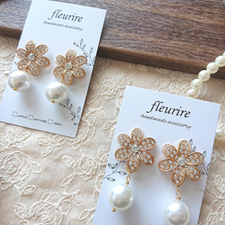 メタルフラワー×花びらチャームのブライダル2wayピアス/2wayイヤリング※アレルギー対応可(サージカルステンレス)