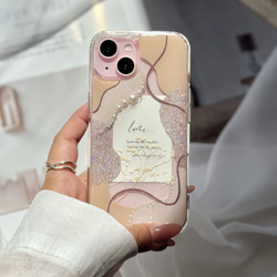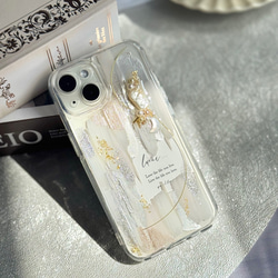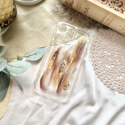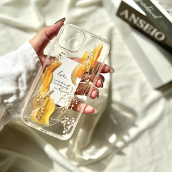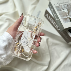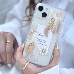 【No.9】人気デザイン!オリーブグリーン かすみ草付 ニュアンスiPhoneケース