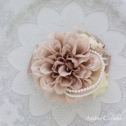 小粒のパールを使用し、コサージュを飾りました。