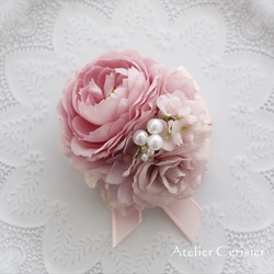 コサージュピンとクリップの2WAYタイプですので、胸元にコサージュとして装うだけでなく、バッグや髪飾りとしてもお使いいただけます。
