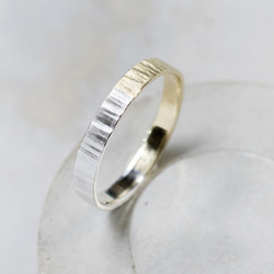 1.0mm幅の華奢な作りで、丸く柔らかいフォルムが特徴。ワンポイントで槌目を打ち込み、フラットな面を作り込んだデザインです。仕上げに落ち着いた質感のつや消しを施しています。控えめなデザインがコーディネートに取り入れやすく、指元にさりげなくアクセントをプラスしてくれます。お手持ちのリングと重ね付けでご着用頂くこともお勧めです。使い込むと時間の経過と共に真鍮特有のアンティークな雰囲気に変化していきます。サイズ(号数)を幅広く展開しておりますので、メンズ・レディース問わずお選びいただけます。