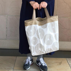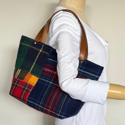ナチュラルカラーに差し色の入れ口のパイピングとループに差し色