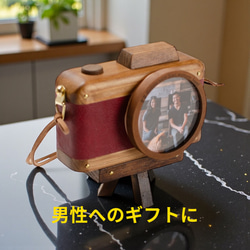 その写真を飾るために選んだのが、このカメラ型フォトフレーム。