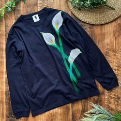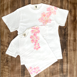 手描き藤の花柄Tシャツ ホワイト 手描きで描いた藤の花柄Tシャツ