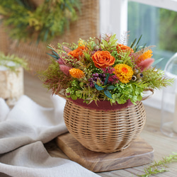 ケースに入れたまま飾れますし、埃なども付きませんのでより長くフラワーアレンジメントの美しさを保つことができます。