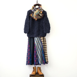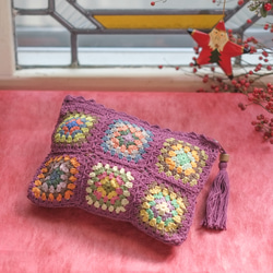 クラフト感のあるワイルドな牛革に、カラフルな手編みのグラニースクエア。