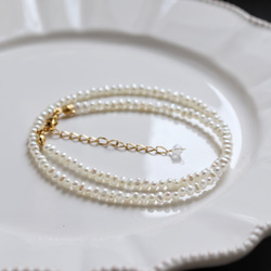 アクセントにホワイトシェルとゴールドヘマタイト、メタルビーズを添えメリハリのあるラインに仕上げました。