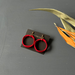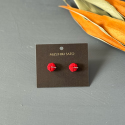 このピアスは私の原点の最初に水引で編んだ梅結びです。ほんのり半円にカーブしているのがポイントです。