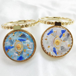 付属の丸いシールの使い道がわからなかったのですが、そのままリング裏面の両面テープでケースに接着できました!