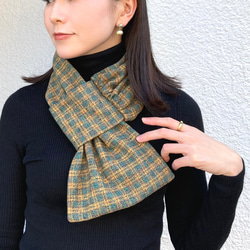 <保冷剤が入るリネンスカーフ>日本製リネン・グリーン