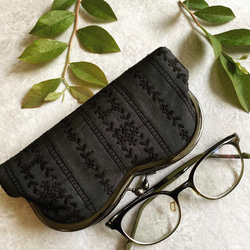 ぷっくり刺繍 ブラック ティッシュがま口 刺繍ポーチ テッシュケース