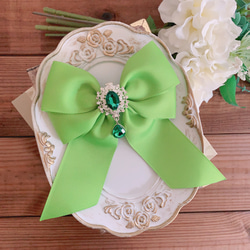 オクラ リボンヘアアクセサリー バレッタ ポニーフック クリップ リボンゴム 個性的 グリーン