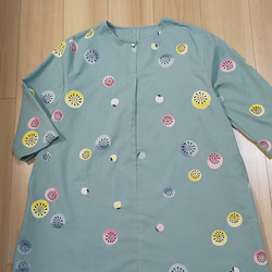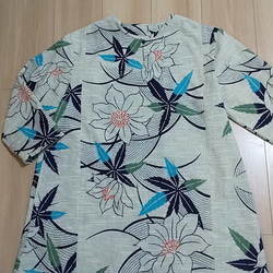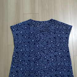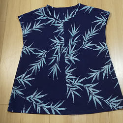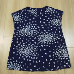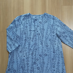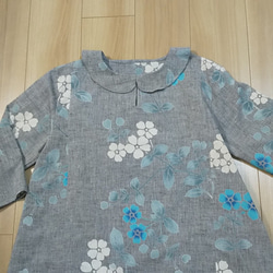 再販 ゆかた地 綿 フレンチブラウス 優しいグレーパープル地に花柄