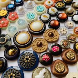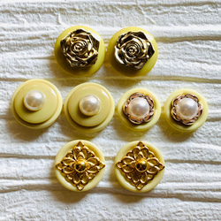 デザインボタンにパールやお花カボション等貼り付け、カボションとしてピアス、イヤリング、バレッタ、ブローチの素材としてお使い頂けます