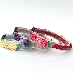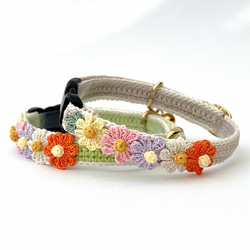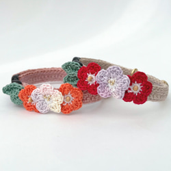 お花 シック 猫さんにやさしい首輪【かぎ針編み 猫の首輪 猫 首輪 セーフティバックル アジャスター 軽い】