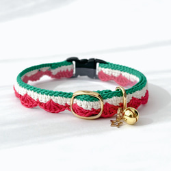 ボーダー ハート チャーム 猫さんにやさしい首輪【かぎ針編み 猫の首輪 猫 首輪 セーフティバックル 軽い】