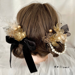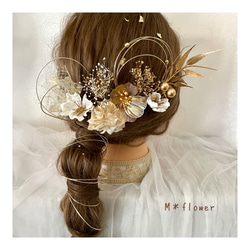 《送料無料》髪飾り ゴールドフラワー×ホワイト 和装 成人式 卒業式 水引 和紐 チュールレース