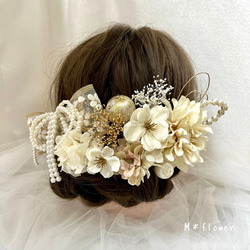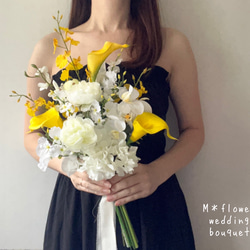 造花多めで後のお花も持ちの良い物で仕上げておりますので、前撮りと当日の両方でご使用頂けます。